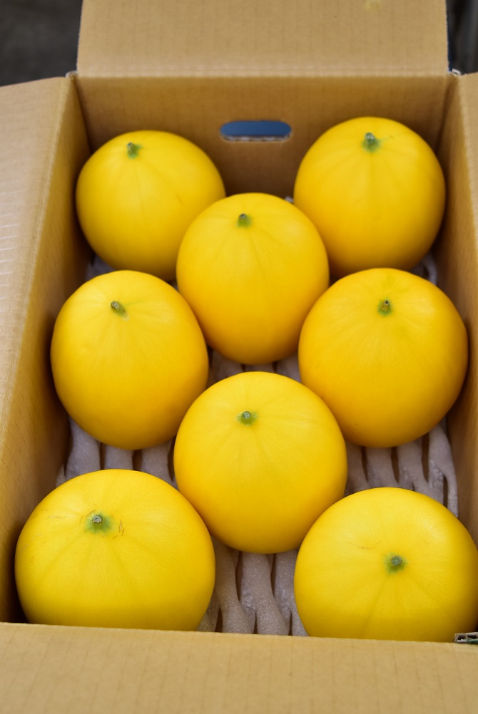 白子町でキンショウメロンの出荷が始まりました。本年産は栽培期間を通して温暖であったことから、生育は例年に比べて若干前進していますが、玉の肥大は良好、糖度や味も良いものに仕上がっています。