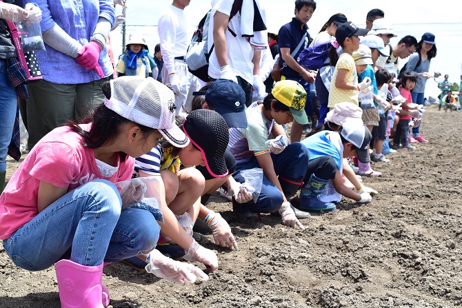 志穂美さんは「これだけの人が集まってくれてとても感動しました。地元の人、遠くから参加してくれた人、みんなで協力して、みんなの想いを被災地へ届けたいです」と話しました。ヒマワリは8月上旬に開花し、収穫したものを被災地へ届ける予定です。