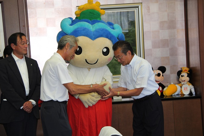 JA長生施設野菜部会アールスメロン部の生産者、JA長生、一宮町などの関係者は4日、千葉県庁を訪問し、髙橋渡副知事に「長生マスクメロン」を贈呈しました。出荷最盛期を迎えているメロンをPRしました。