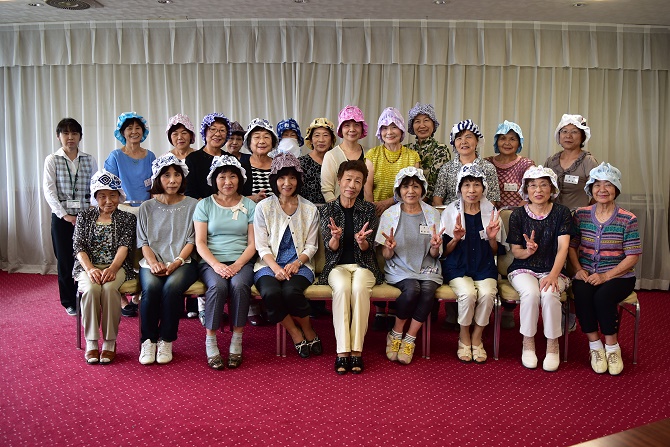 JA長生女性部は13日、女性部短期大学校第4回講座をJA長生本所で開講し、20名以上の方が参加しました。今回は、家の光の記事として掲載されていた、手ぬぐいを使った「つば広帽子」作りです。 みなさん女性部役員の方たちと相談しながら手ぬぐいを縫い合わせていき、夏にぴったりの涼しい柄のものやかわいい柄のものなど、様々な帽子が完成しました。手ぬぐいで作っているということもあり、汗を吸うのでタオルとして使うことも可能です。
