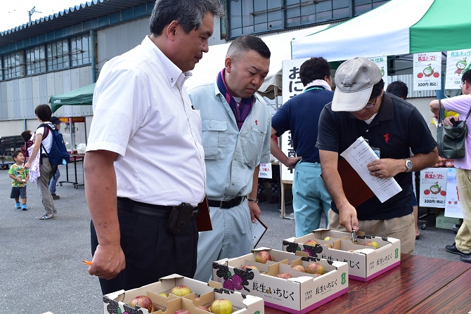 JA長生は9月10日、本所でいちじくの共進会を開催しました。今年で第2回目の開催。審査員は、長生農業事務所、JA全農ちば、市場関係者など4人です。同共進会は、生産者の栽培技術向上、生産意欲の高揚を図り、地域農業の発展に寄与することを目的としています。また地域住民へのPRとして、JA長生新米フェアの会場内で開催しました。