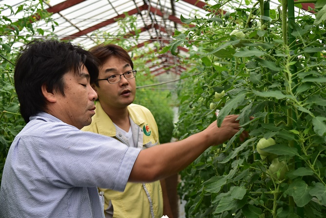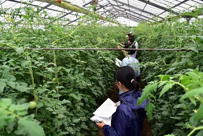 JA長生は9月20日、一宮町のJAグリーンウェーブ長生で、抑制トマトの立毛共進会を開催しました。県農林総合研究センターや長生農業事務所、行政、JA全農ちば、市場関係者など10人の審査員が、3圃場を審査しました。