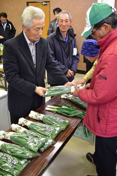 1月11日、白子町玉葱出荷組合と長生村露地野菜出荷組合玉葱部会は白子支所で、販売方針、現品査定を行う生産者大会を開きました。生産者、調整農業事務所、JA全農ちば、行政、市場関係者など約40人が参加しました。白子町玉葱出荷組合の片岡組合長は「消費者のニーズに合ったものを出荷し、有利販売につなげていきたい」と話しました。