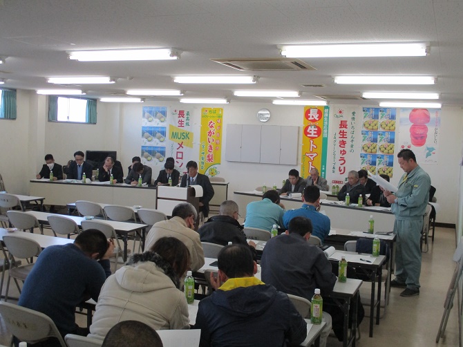JA長生施設野菜部会は2月3日、グリーンウェーブ長生で抑制トマト、抑制キュウリの反省会を開催しました。生産者、長生農業事務所、市場関係者、JA全農ちばなどが出席し、本年度の反省点や次年度対策などについて協議しました。 本年度の抑制トマト、抑制キュウリについては、記録的な長雨と日照不足で例年以上に厳しい栽培環境となりました。毎年「異常気象」と言われる天候に見舞われていますが、産地として、悪天候の中でも安定した生産量が確保できるよう、栽培と環境の管理徹底に取り組んでいくことを申し合わせました。