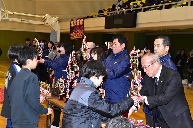 大会は、約340人の小学生が参加し、女子12チームを4ブロック、男子6チームを2ブロックに分け、総当たり戦で試合しました。