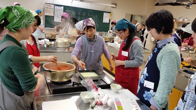 2月23日、「おいしさいっぱい!ちばの恵み体験ツアー」が開催され、県内大学生21名が視察に訪れました。 参加者はグリーンウェーブ長生、長生フロンティアファームのトマト栽培施設を視察し、次に長生村文化会館でJA長生女性部を講師に、トマトケチャップ、太巻き寿司作りを体験しました。 千葉県は「『ちばの恵み』を取り入れたバランスのよい食生活の実践による生涯健康で心豊かな人づくり」を基本目標に掲げて食育の推進に取り組み、地域の食文化を大切にする豊かな人間性を育むことを目指しています。