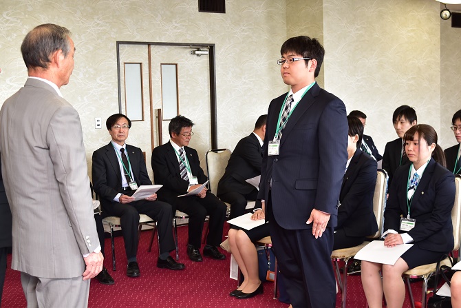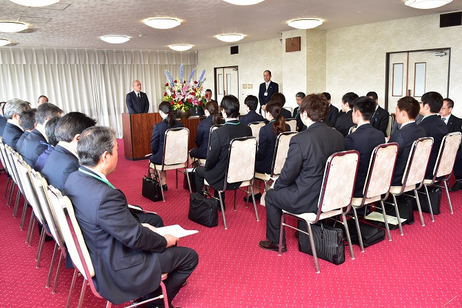 4月3日JA長生本所で入所式が行われ、本年は12名の元気な新人職員が入組しました。 河野豊代表理事組合長は「何か辛いことがあっても一人で悩まず、周りに相談をし努力を続け、これから40年、長く勤められる職員になってほしい」と励ましの言葉をかけました。 一人ひとりに辞令が交付され、4月3日からそれぞれの配属先に見習いとして着任します。地域の皆様と接する機会もあると思いますので、温かいご指導をよろしくお願い致します。