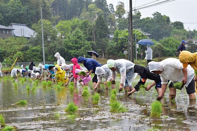 5月13日、JA長生は関東一円に展開するスーパーマーケットと協賛し、茂原市の水田で田植え体験を行いました。今年は30人の親子が参加してくださり、みんな雨にも負けず一生懸命に苗を植えていました♪
