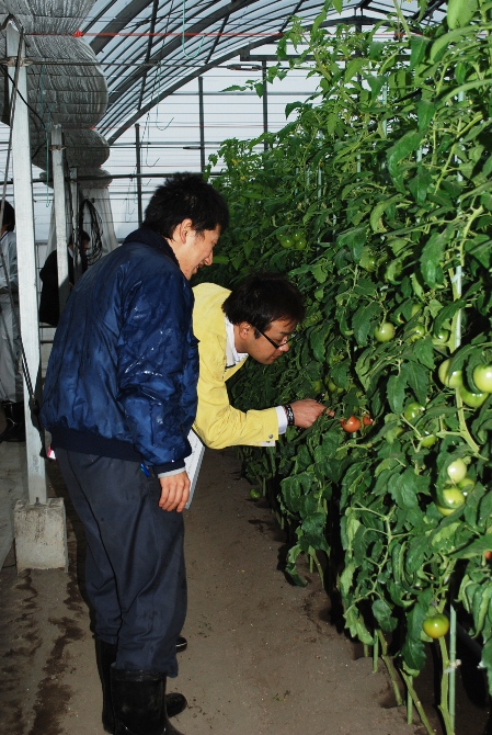 審査委員は6つの圃場(ほじょう)を回り、「生育、着果、果形、収量、病害虫、管理、食味」の7項目を審査。