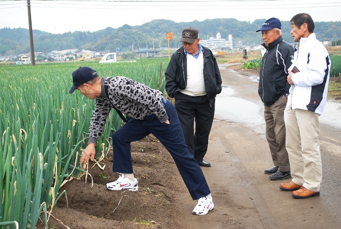 同部のネギの栽培管理について、圃場(ほじょう)を視察し意見交換をしました。