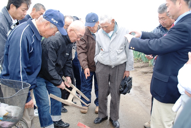 金目露地野菜部会員からは「土上げはどのようにしているのか。」「チェーンポットを使うと費用はどのくらいかかるか。」など、多くの質問があり、部員は分かりやすく答えていました。活発な意見交換が交わされました。