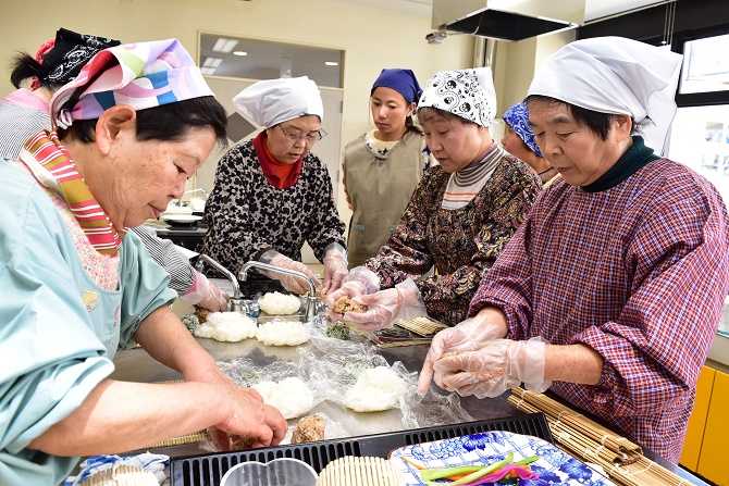 「太巻き寿司の絵柄で四季を表現したい」という思いから、今回JA山武郡市女性部公平支部の平山光子さんと小倉公子さんを講師に招き、講習会を開催しました。