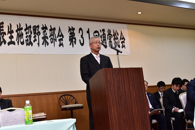 JA長生施設野菜部会は、ホテル一宮館で第31回通常総会を開き、部会員、行政、わかしお農業共済組合、JA全農ちば、市場関係者、JA役職員など約120人が出席しました。 議長に峰島誠氏を選任し、事業・収支報告、次年度事業計画・収支予算、役員改選についてなど3議案が上程され、すべて可決承認されました。新役員には、部会長に田辺一也氏、副部会長に田中博氏、峯島弘一氏が選ばれました。