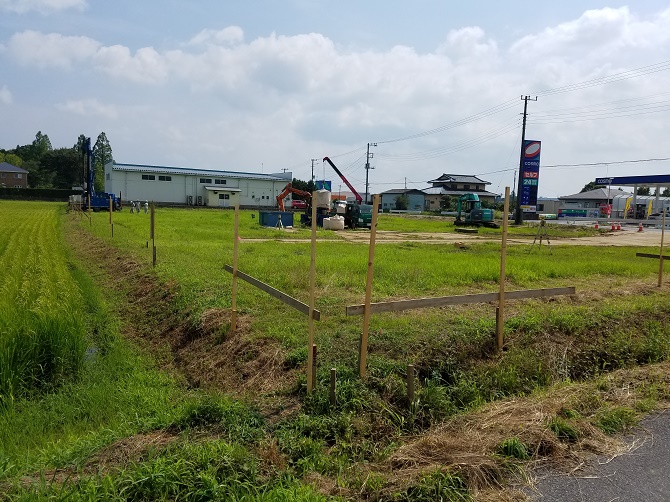 本日からですが、いよいよ新直売所の工事が始まりました。 平成29年1月から新直売所プロジェクト会議を開催し、紆余曲折を経てようやくスタートいたしました。 直売所用地調査・地主交渉・農地転用・開発許可など、様々なハ-ドルを行政各課の皆さんと調整しながら着工にこぎつきました。関係者の皆様ありがとうございます。 盛土工事に伴い建物の規模や地質なども計算して、擁壁基礎のコンクリ-ト杭打機による作業をしています。8月下旬盛土工事完成にむけて進めています。