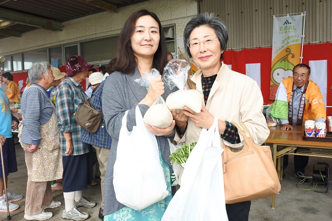 10月27日、本納地区にてふれあい感謝祭を開催しました。この日は朝から雨が降っていましたが開会式では、雨が止み無事に開催することが出来ました。 会場では、他の地区のように新鮮な地元農産物の販売や生活購買品の販売、肥料・農薬・共済・ローン等、各種相談窓口を設置した他、青年部による焼きイモの販売や地元のドーナッツ屋さんを呼び販売する等、本納地区ならではの特色を生かして会場を盛り上げました。 また、ステージイベントも盛りだくさんで最後まで来場者を楽しませてくれました。