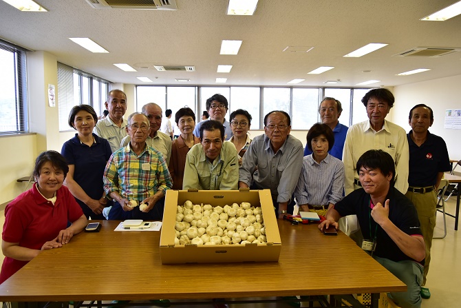 長柄町ニンニク生産組合が、組合としての初出荷を前に日吉支所にて査定会を開き、生産者、JA全農ちば、市場関係者等20人が参加しました。 査定会では情勢報告や出荷標準規格などを協議したのち、現品査定を行い、持ち寄った現品を等級ごとに分けて確認したり、規格外について入念に選別の目を統一。規格ごとに写真におさめ、選別時に確認できるように工夫する生産者もいました。 出荷は6月上旬より始まっています。