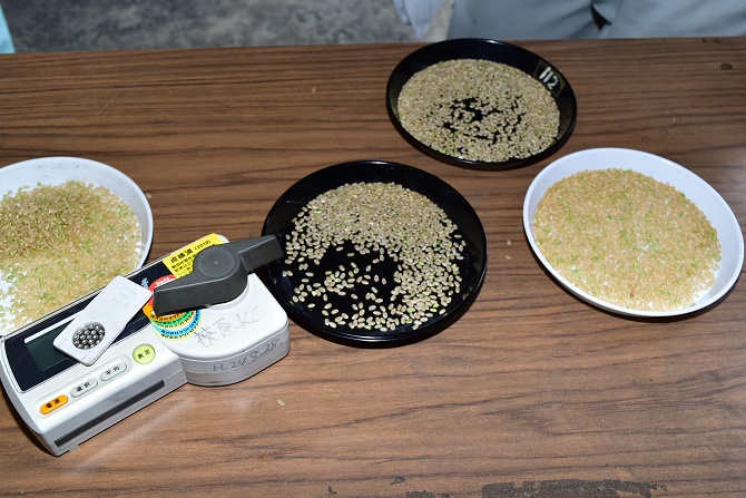 JA長生は茂原市の旧茂原経済センターにて、令和元年産米の検査員の目揃え会と初検査を実施しました。 約20名のJA農産物検査員は、現品査定で「ふさおとめ」や「あきたこまち」、極早稲米「五百川」の目揃えを行い、整粒歩合や水分量、未熟米などを検査しました。 本年は9月中旬までに、21万俵(1俵60㎏)の集荷を計画しています。