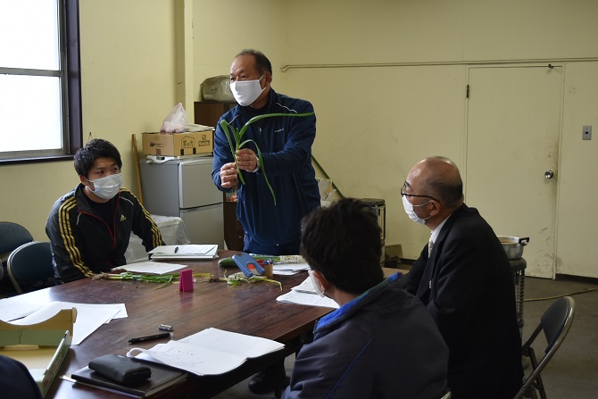 JA長生管内で、この時期だけの味覚、葉にんにくの出荷が始まりました! 本格出荷を前に白子町玉葱出荷組合葉にんにく部会は、JA長生白子選果場において、令和2年産葉にんにくの査定会を開き、生産者、県長生農業事務所、JA全農ちばら12人が参加しました。 現品研修では新規生産者を中心に全体の品質や規格統一のため、選別や根の切り方、袋詰め・箱詰めの仕方など、出荷調製作業にかかる留意点について入念に確認を行いました。