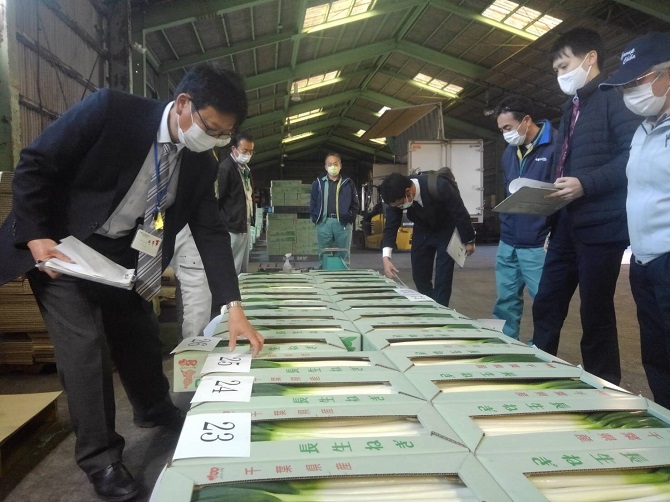 審査員は長生農業事務所、JA全農ちば、JA職員らで、出品されたネギの色、ツヤ、鮮度、軟白部の太さや長さ、根葉切り調整、箱内の揃いなどを審査。1次審査、2次審査を行い、厳正な審査の結果、最優秀賞には高山久史さんが選ばれました。