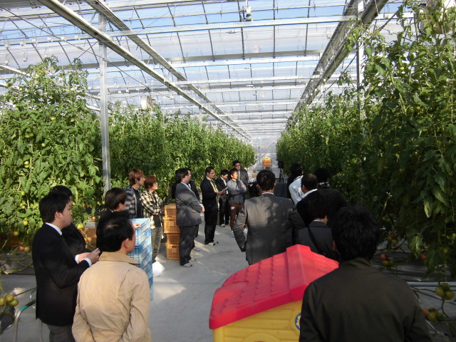 ココバックシステム、スプレイポニックシステムが施されているハウス内では市場・仲卸関係者からハウスの管理から栽培まで、さまざまな質問を受けていました。
