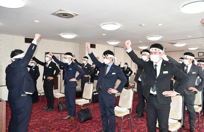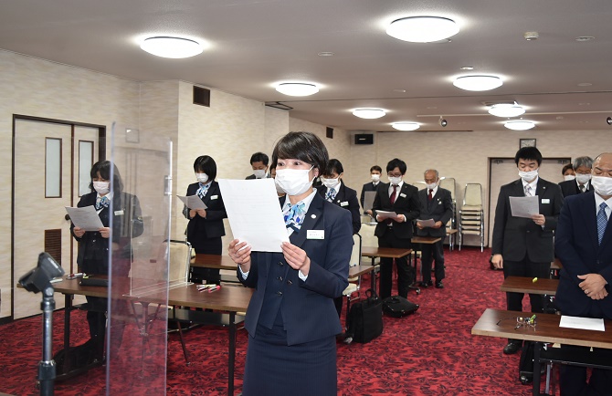 新年度の事業が始まるにあたり、7日にLA進発式、11日に金融渉外の進発式を開催し、本年の活動計画と目標を確認しました。 それぞれの渉外担当者代表が目標達成に向け力強い決意表明を行いました。 本年はLA23名、金融渉外9名体制で、組合員の皆さまの暮らしやライフスタイルに即したご提案やサポートに取り組むことを申し合わせました。