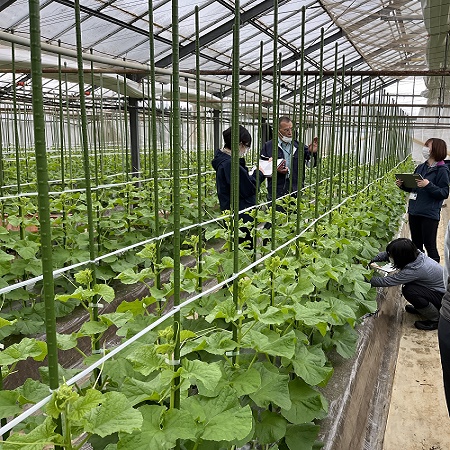 JA長生施設野菜部会アールスメロン部は、生産者、千葉県農林総合研究センター、長生農業事務所、種苗会社、JA職員らとともに、生育状況の確認や今後の管理指導を行うため、全21戸の圃場巡回を実施しました。 順調に生育中の長生マスクメロンは、6月下旬から出荷予定です。