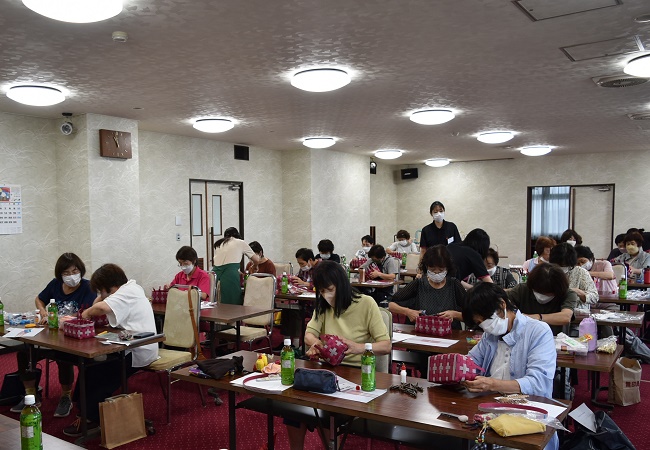 JA長生女性部短期大学は、本所において第5回講座「手芸教室(クラフトバンド)」を開催しました。短期大学生13名、女性部役員11名が参加。講師を招いて基礎からしっかりと学びました。