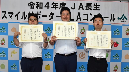 ロールプレイング形式で、商品の熟知度や説明力を競い合い、厳正な審査の結果、スマイルサポーター部門は白子支所の木島三知恵担当、LA部門は睦沢支所の中村正利主任がそれぞれ最優秀賞を受賞しました。