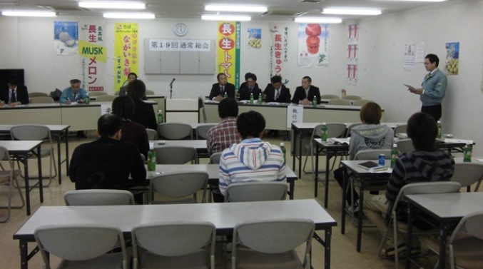 JA長生施設野菜部会青年部は3月28日、グリーンウエーブ長生で「第19回通常総会」を開催しました。部員、長生農業事務所ら21人が出席しました。 石井部長は挨拶で「100万ケースの達成と維持に向け、産地として積極的に規模を拡大していく必要がある。青年部員は率先して規模拡大に取組みましょう」と話しました。 総会では、伊藤誠氏を議長に選出し、2議案すべて承認しました。青年部では組織力、生産力、流通情報収集の強化を申し合わせました。