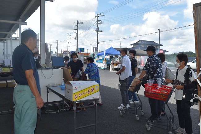 農産物直売所ながいき市場にて、9日と10日に新米まつりを開催しました!ブランド米「ながいき美人」を特別価格での販売、新米のおにぎりプレゼントなど、イベントを目的に2日間で約2,000人が来店し賑わいました。本年は、梅雨が短く気温の高い日が続いたこともあり、厳しい環境の中でしたが、生産者の皆さんの努力で品質・食味の良いコシヒカリが「ながいき美人」として消費者に届けられました。