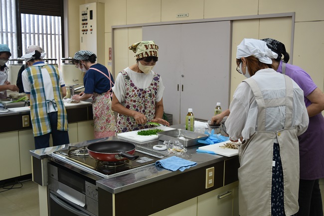 JA長生女性部短期大学校の第5回講座となる米粉の講習会が、白子町健康づくりセンターにて行われました。参加した14名の短大生らは、班ごとに分かれ調理を開始し、「ういろう」や「がんも」「ドリア」など全5品の米粉料理を作りました。