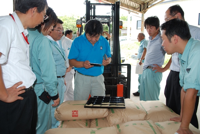 8月16日、長南町の関原営農組合の倉庫前で平成24年産米の初検査と目揃い会を行いました。