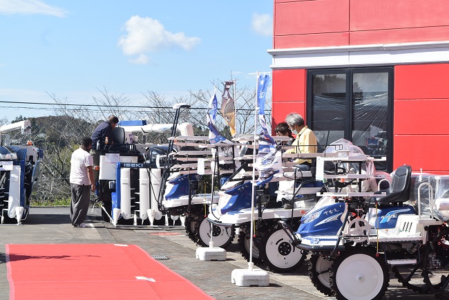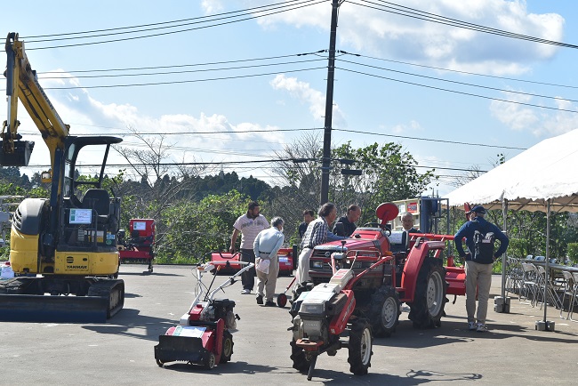 10月19日から21日の3日間、長柄町のロングウッドステーションで、第48回農業機械大展示会が開催されました。農業機械、肥料農薬、生産資材メーカーなど約50社が出展する、県内でも最大規模の展示会で、JA長生管内からは、3日間で約1,800人の方にご来場いただきました。広い会場のなかでは、新型・中古農業機械や園芸資材の展示や試乗が行われたほか、様々な特設コーナーが設けられ多くの人で賑わいました。来場者は実際に機械に触れ、メーカーから性能や操作方法の説明を興味深く聞いていました。