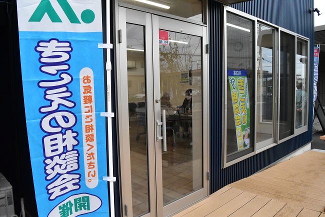 カクイチA-SITE茂原にて、JA長生くらしの展示会が開催されました。会場の中では、倉庫・ガレージ等の建物相談やこだわりの全身マッサージ機体験会、きこえの相談会、お茶の詰め放題などのイベントが行われました。訪れた来場者は、実際にマッサージ機に乗ったり、展示されている倉庫やガレージ内を見学したりしながら、メーカーからの説明を熱心に聞いていました。