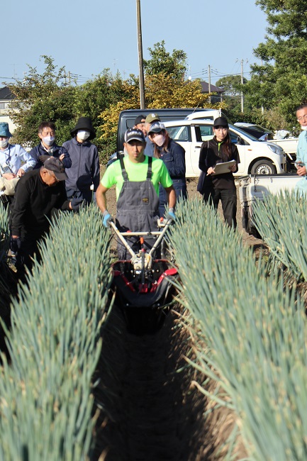 JA長生は、長生農業塾ネギコースの第5回講座を開催し、塾生、長生農業事務所、JA職員らが参加しました。今回の講座では、実習圃場にて追肥と管理機を使った、止め土作業を行いました。次回は、12月中旬に収穫・調整作業を行う予定です。