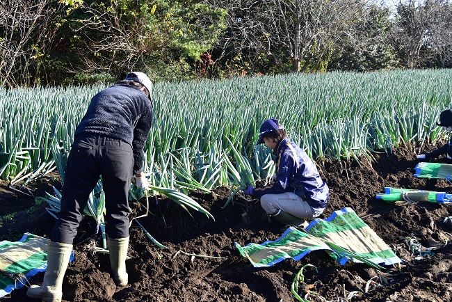 JA長生は、長生農業塾ネギコースの第6回講座を開催し、塾生、長生農業事務所、JA職員らが参加しました。今回の講座では、ネギの収穫と出荷調整作業を行いました。圃場での実際の収穫体験と、機械を使って根切りと皮むき、箱詰め作業や等級別の選別作業などコツやポイントを学びました。
