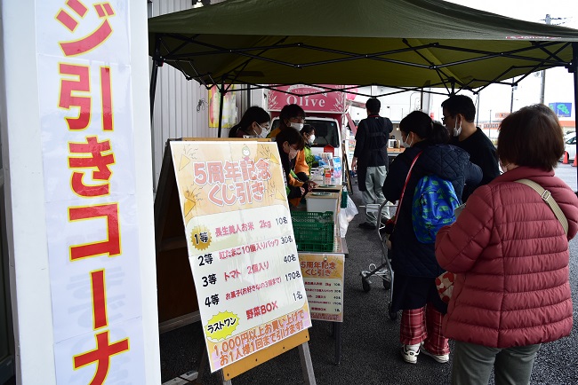 皆様に感謝の気持ちを込めて4/6.7の2日間で5周年記念祭を開催しています!1,000円以上お買い上げの方に豪華賞品の当たるクジ引きやアイシングクッキーのワークショップ、キッチンカーも集合し、様々な特設イベントを行っています。