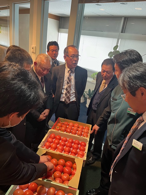 販売情勢報告や実績・作柄報告を行ったのちに、市場関係者らと今後の有利販売に向けた対策を協議しました。