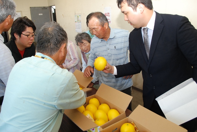 剃金農事研究会は5月23日、白子町のJA長生白子選果場で生産者、市場関係者などが出席し査定会を開きました。